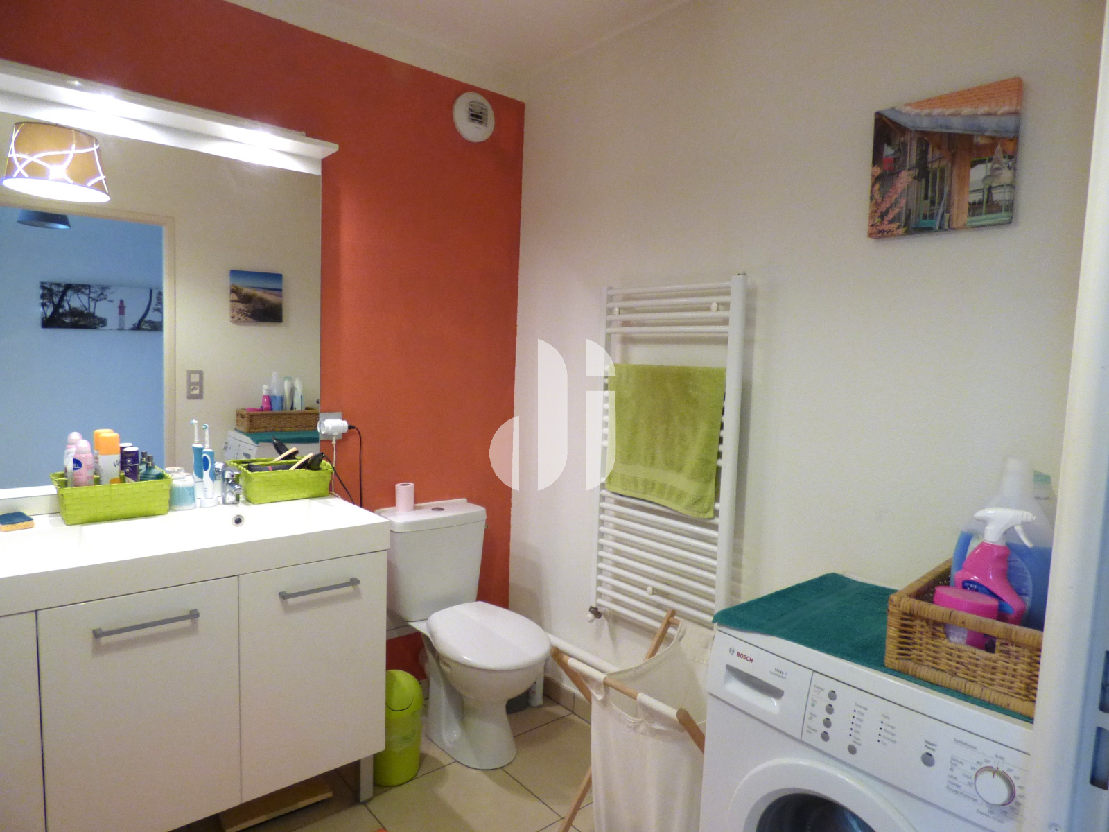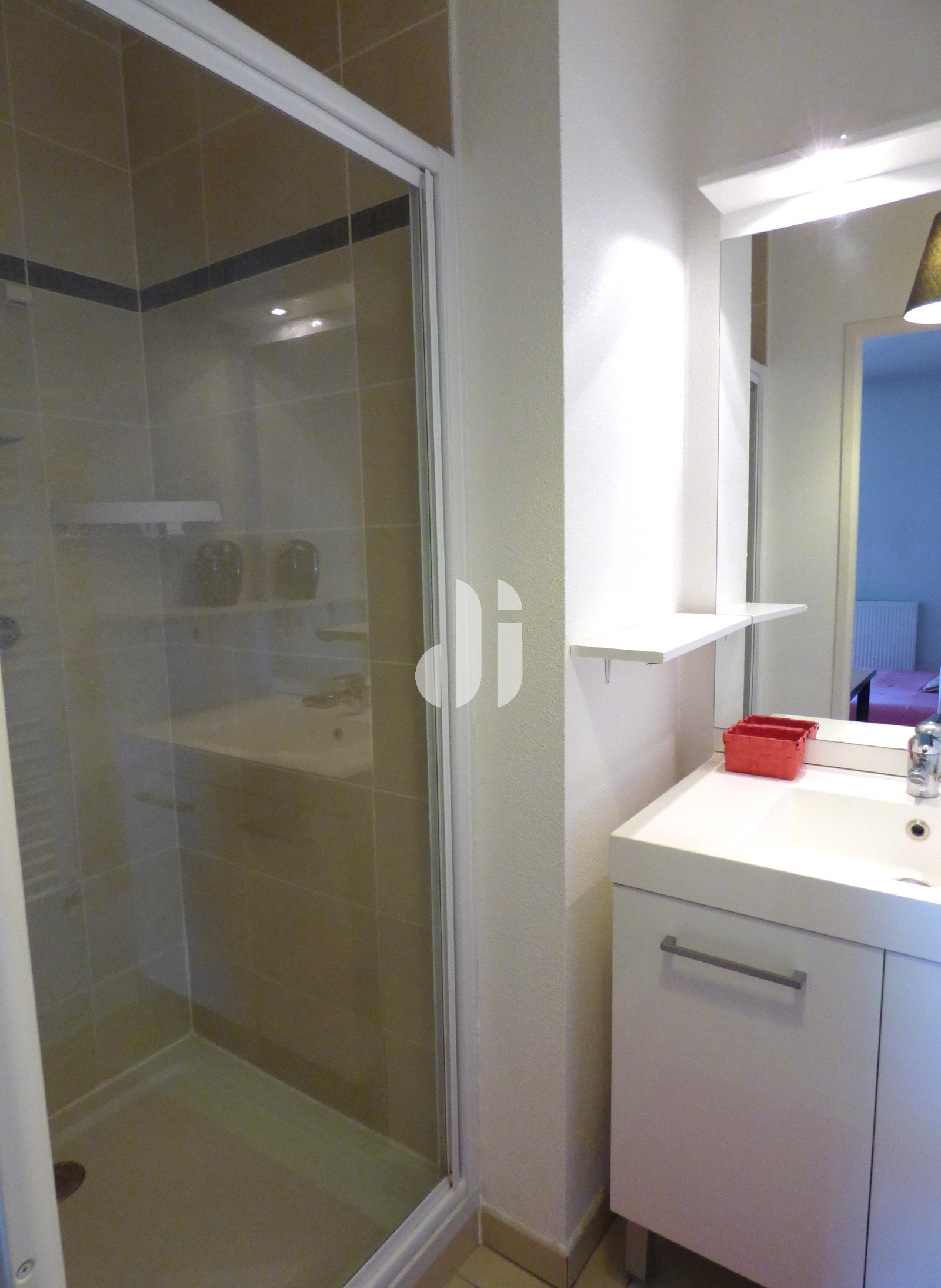 Carrelage - douche + vasque + sèche-serviettes