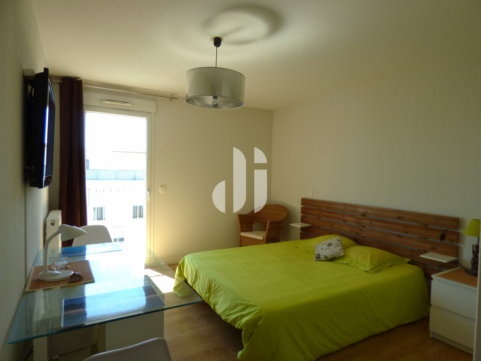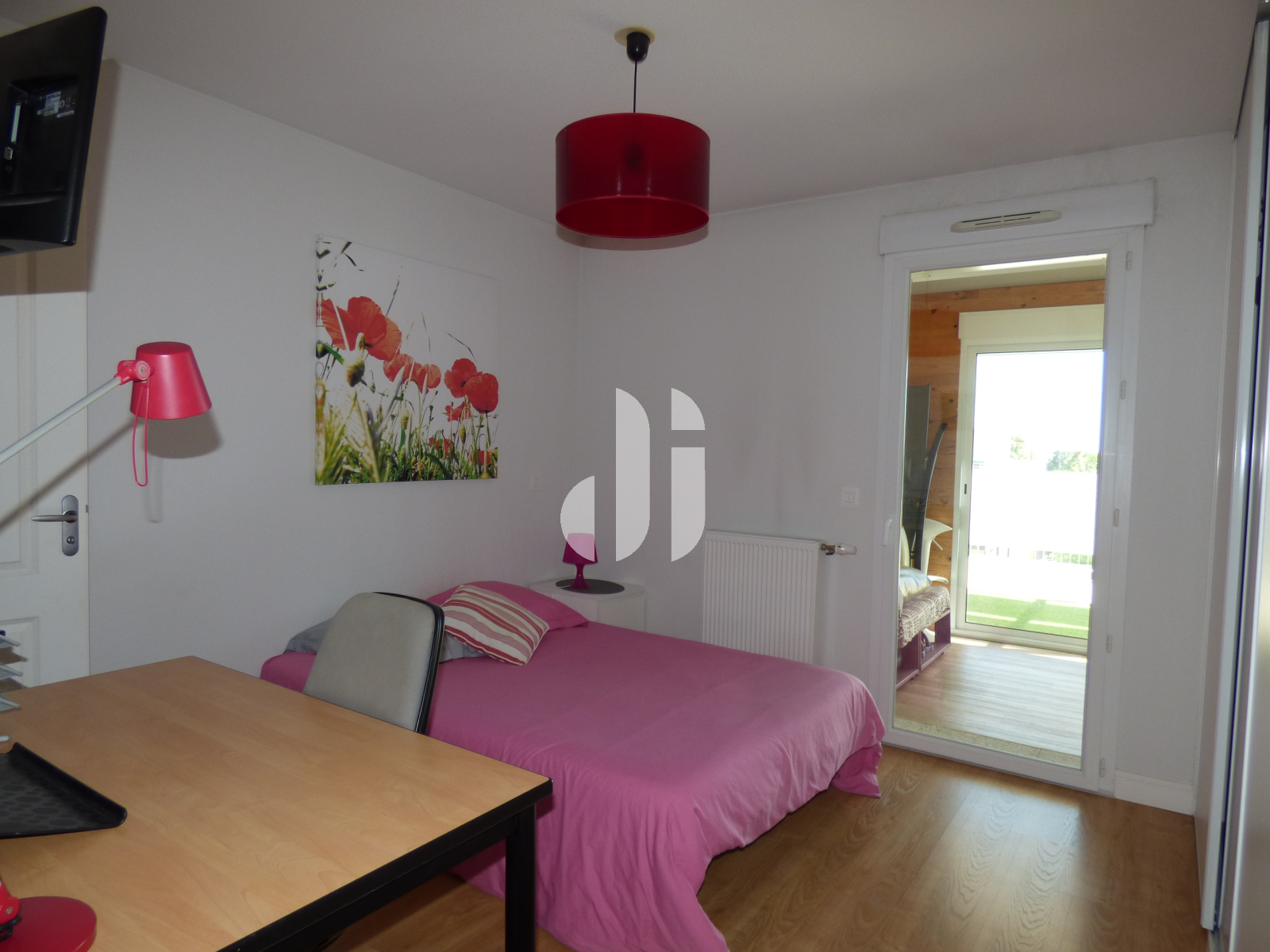Parquet flottant - placard - porte à galandage - ouverte sur le séjour - porte-fenêtre avec VRE donnant sur la véranda