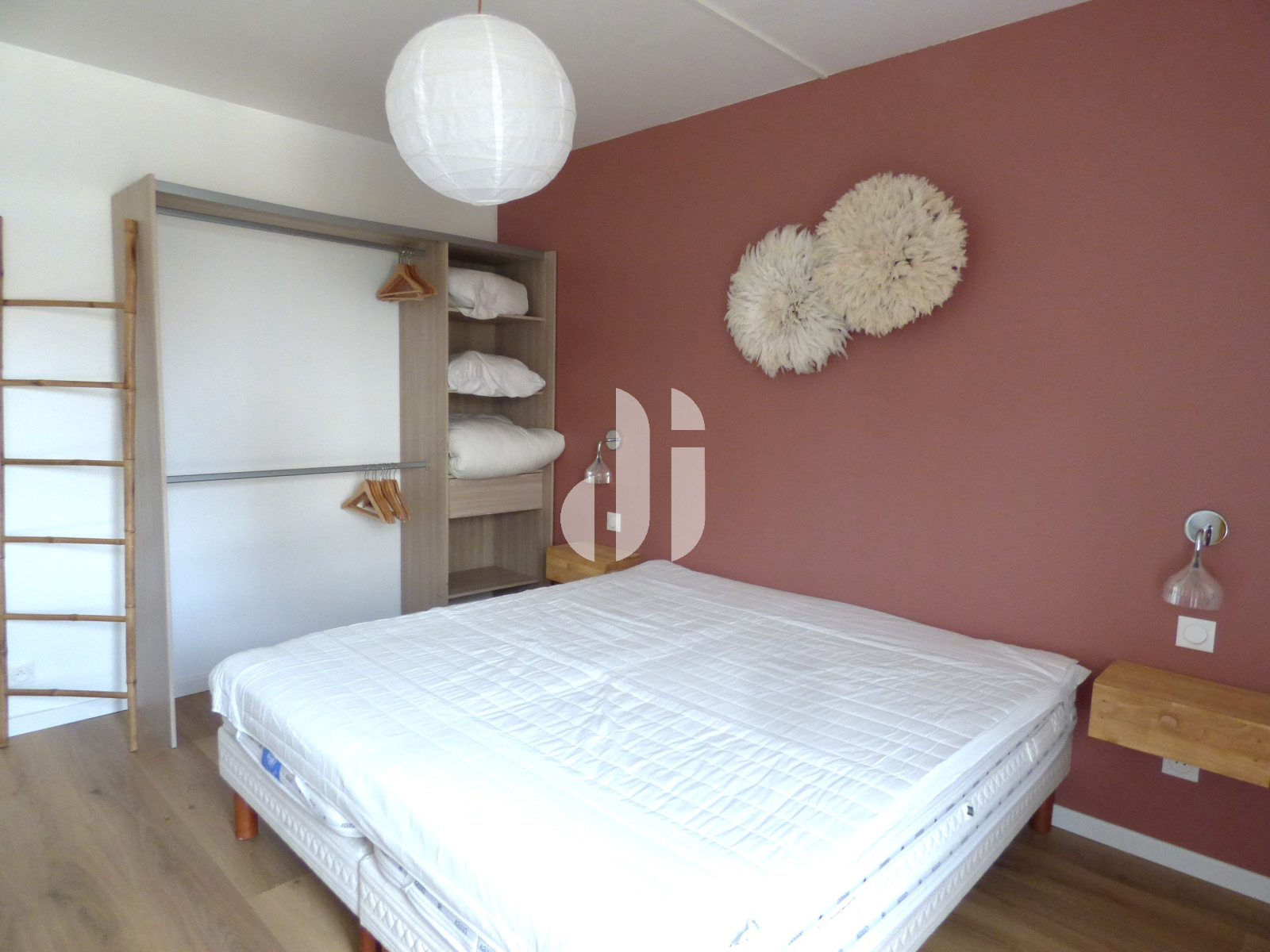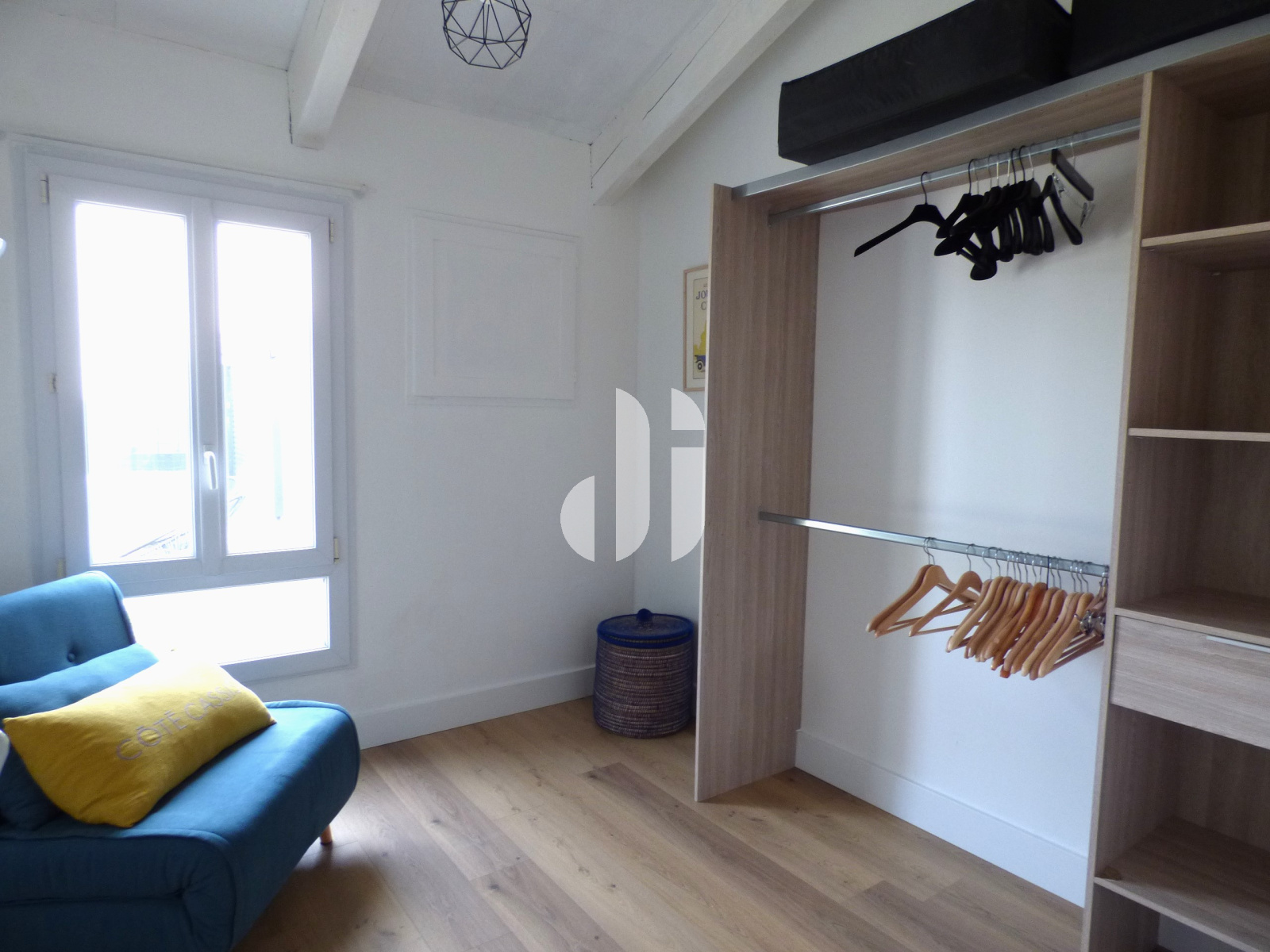 Parquet flottant au sol - placard ouvert avec étagères pourrait servir de petite bibliothèque