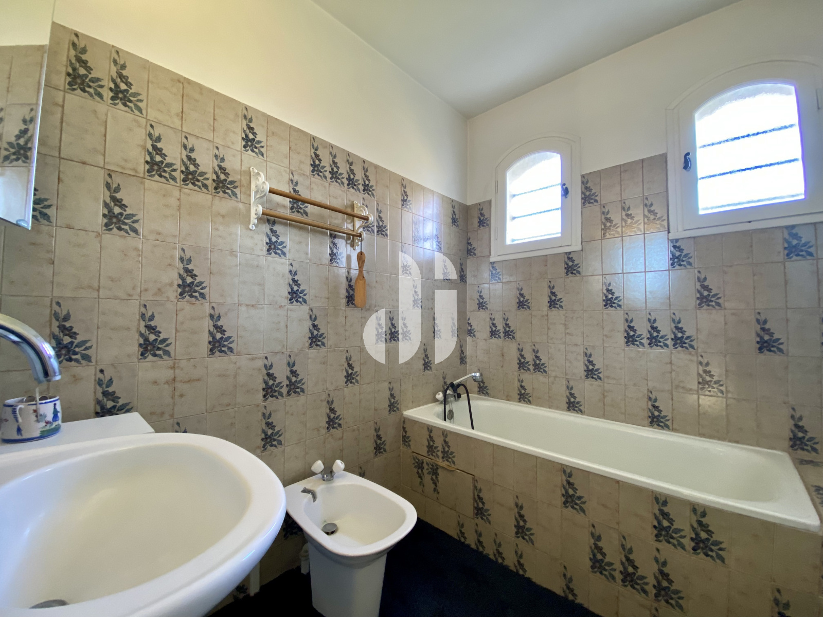 sol moquette. 2 fenêtres bois d'origine orientation NO. 1 vasque, bidet, baignoire. pas de vmc ou aération autre que les fenêtres (équipées de barreaux).