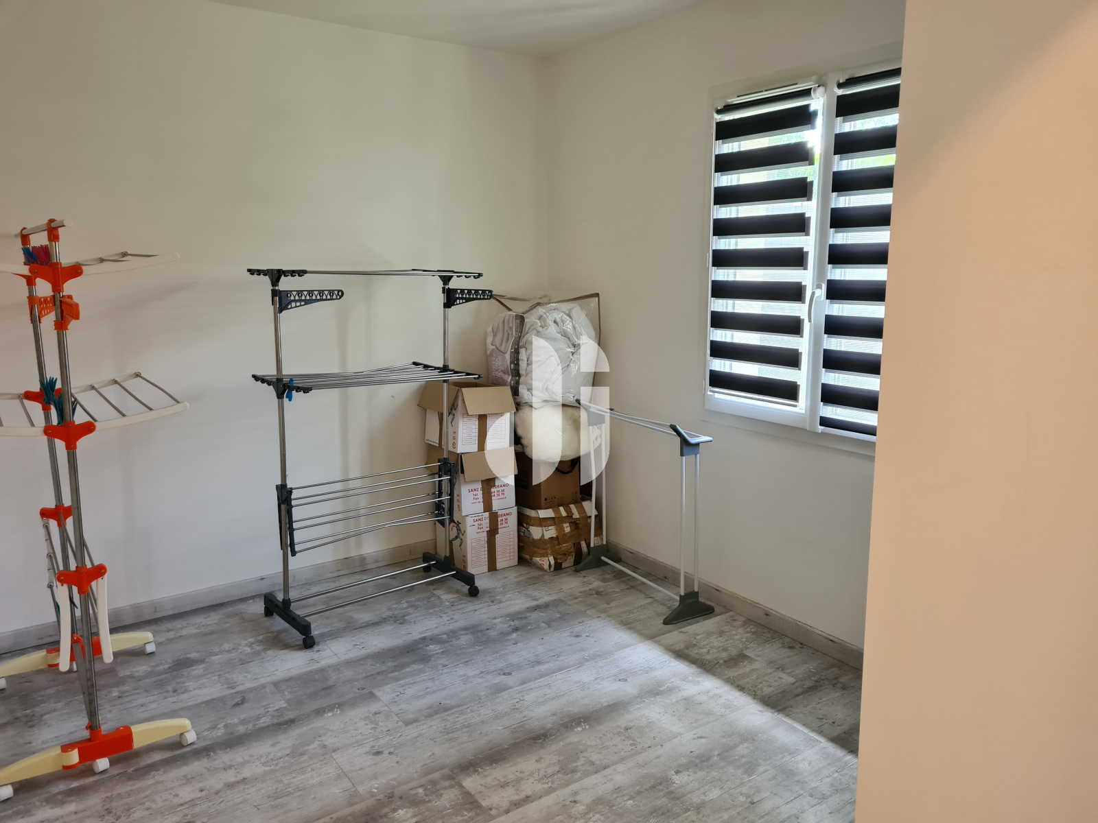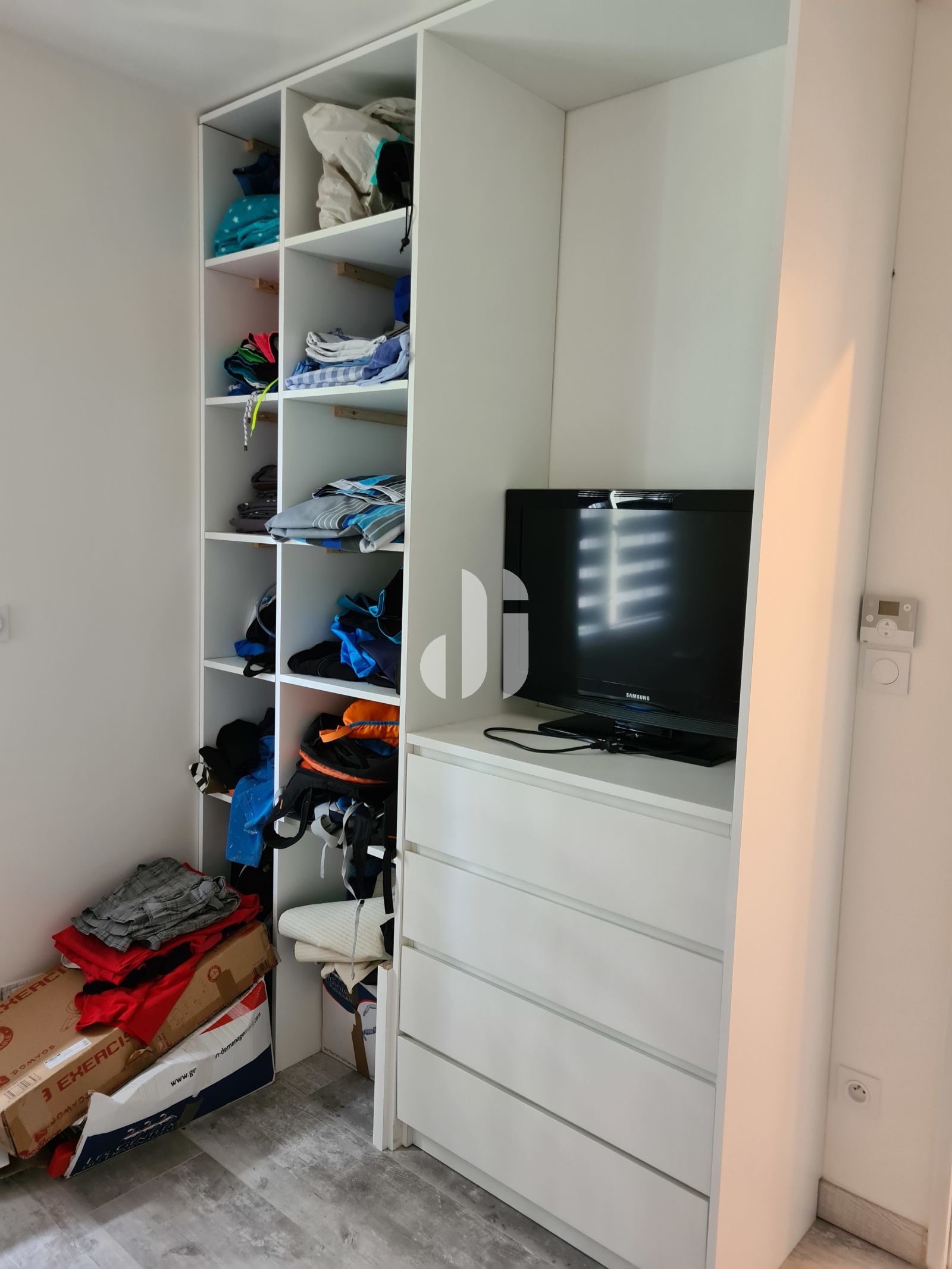 Aménagement dressing - étagères + penderie + tiroirs - VRE - store enrouleur jour-nuit gris